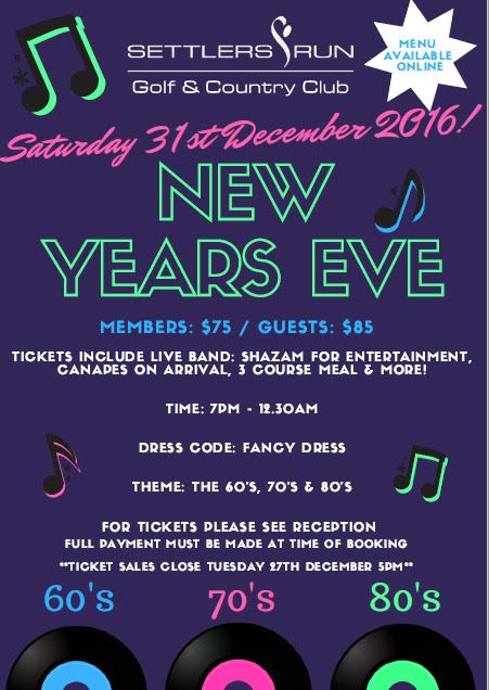 Bring in 2017 at Settlers Run Golf & Country Club on Saturday 31st December 2016