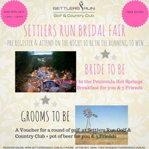 Come down to Settlers Run Golf & Country Club on Wednesday 12th October 2016 for our Annual Bridal Fair.